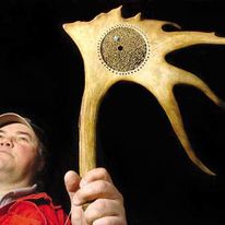 Jonathan is influenced by his ancestors and his time spent on the ocean, something very close to him, being from an island Native community. Jonathan continues to use the materials and knowledge handed down from his ancestors to express his understanding of the Natural World and the change that it has experienced in the past four hundred years. Jonathan’s three dimensional artwork ranges in size from large, hand-carved dugout ocean vessels, to stone effigy pipes and high-end copper jewelry.
