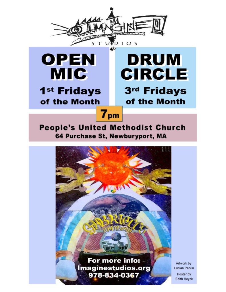 Imagine Studios 1st Friday Community Open Mics and 3rd Friday Drum Circles have resumed! Please check facebook for updates!