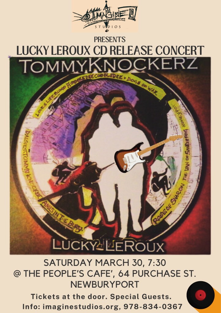Opening act singer-songwriter-guitarist and musical activist Lucky Leroux will perform original songs from his recent release Tommyknockerz!
