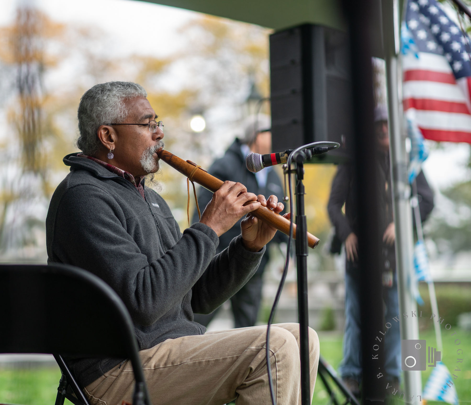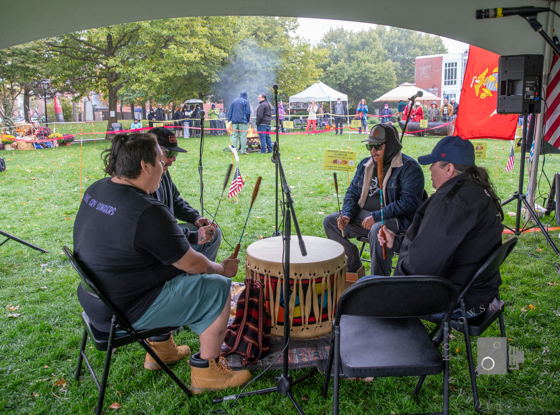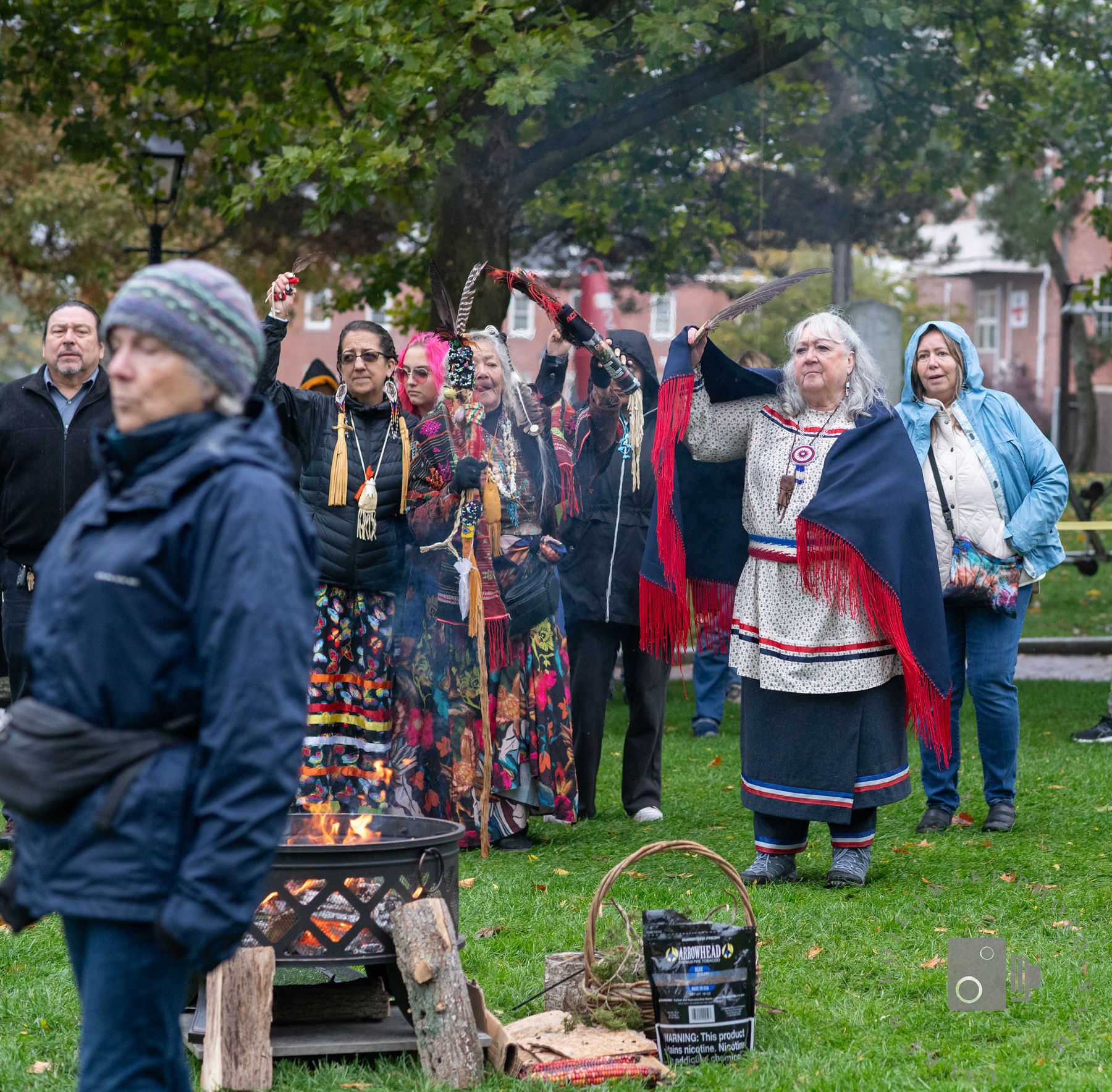 10:00 am Opening circle and acknowledgements with intertribal Indigenous representatives, city and state officials, with drumming by The Wampanoag Nation Singers and Dancers, Nicholas Paul and Family and Lonecry Singers.