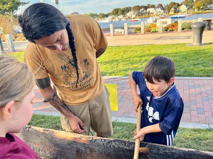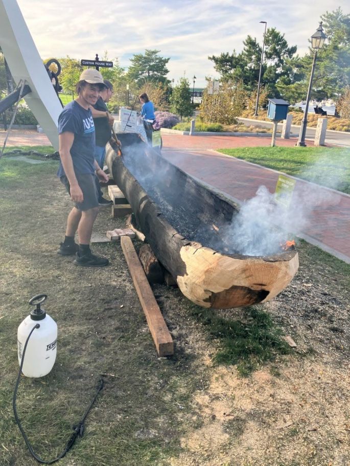 See below for public muhsh8n making events September 14-october 4th at the Custom House Museum and the inaugural launch and paddle, Saturday, October 11th at Waterfront Park! Watch the mishoon being burned and shaped!!